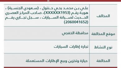 شهرت وزارة التجارة بصاحب مركز يختص في تجارة إطارات السيارات بمحافظة الخفجي، وذلك إثر صدور حكم قضائي يدينه بمخالفة نظام…