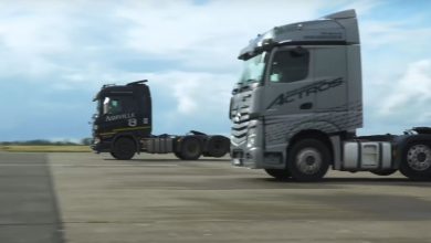 شاهد سباق مضحك بين شاحنات مرسيدس وسكانيا