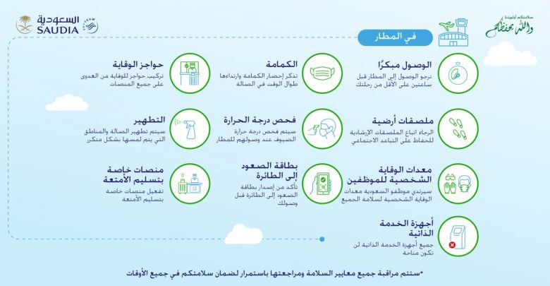 عبر الخدمات الالكترونية والتباعد الاجتماعي وإجراءات احترازية في كافة المواقع وعلى متن الطائرات الخطوط السعودية تطبق جملة من الإجراءات الوقائية…