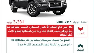 استدعت وزارة التجارة 2035 سيارة ميتسوبيشي Triton/L200 موديلات 2007-2016، و3331 سيارة ميتسوبيشي “Pajero” موديلات 2017 – 2018. وجاء استدعاء تريتون…