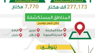 كشفت وزارة البيئة والمياه والزراعة أن فرق الاستكشاف والمكافحة قامت خلال شهر نوفمبر، بمسح 277,173 هكتار ومعالجة 7,770 هكتار، في…