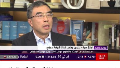 لقاء حصري لقناة العربية مع رئيس مجلس إدارة “هواوي” يناقش تحديات الحظر الأمريكي واستراتيجية عمل الشركة وآفاقها المستقبلية في منطقة الشرق الأوسط