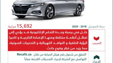 استدعت وزارة التجارة 15,692 سيارة هوندا أكورد موديلات 2018 و2020، وأكدت على ضرورة التأكد من شمول رقم هيكل السيارة من…