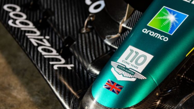 أستون مارتن تحتفل بالذكرى السنوية الـ110 بشعار احتفالي على سيارة AMR23