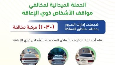 قامت إدارات المرور بحملة مرورية لضبط المركبات المخالفة بالوقوف في مواقف ذوي الاحتياجات الخاصة. ونتج عن الحملة ضبط 1030 مركبة قام أصحابها…